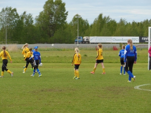 Kälviän Tarmon D12-tytöt olivat vieraina Ylivieskassa YPAn tyttöjä vastaan. Edellinen joukkueiden välinen ottelu kauden alussa oli päättynyt Tarmon 6-3 voittoon. Vaan nyt peli käynnistyi tasaisessa merkeissä. Oliko tytöt kylmän tuulen kangistamia vai mistä johtui, että pelitempo oli alkuun hyvin rauhallinen ja tapahtumat kentällä näyttivät välillä pelailulta kavereiden kesken. Ypa avasi pelin maalitilin, mutta Tarmon maalitykki Olga Ahokangas hoiti pisteet kotiin onnistumalla kaksi kertaa minuutin välein maalinteossa.